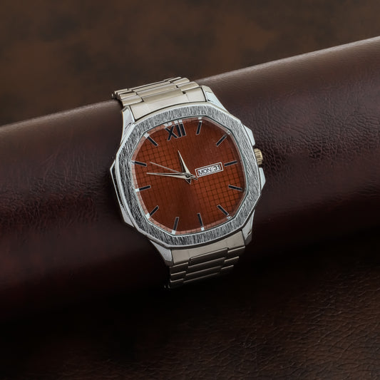 MOOVER Octagon Dial Men's Analog Watch with Day & Date Display – Stainless Steel Strap (Multiple Colors)